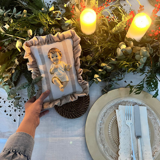 Ed. Limitada: Niño Jesús (15 cm) Grande Almohadita Volante - Emaús Beige