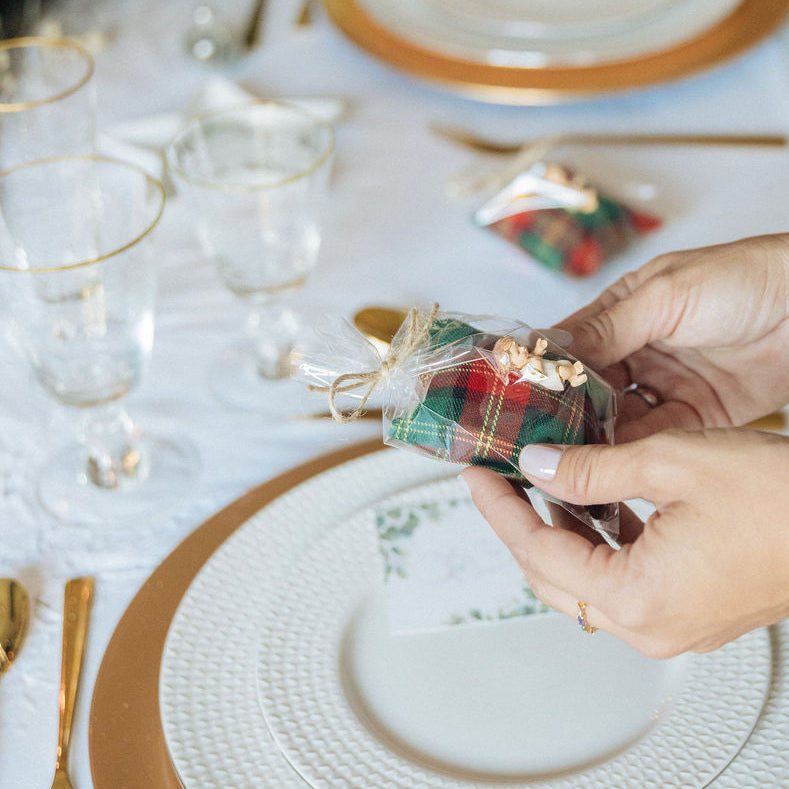 Nos derrite este perfecto tartán: el verde nada llamativo, el rojo navideño y los cuadros perfectos del amarillo son la cuna perfecta para que el Niño Jesús invada cada cubierto en tu mesa de Holy Night.