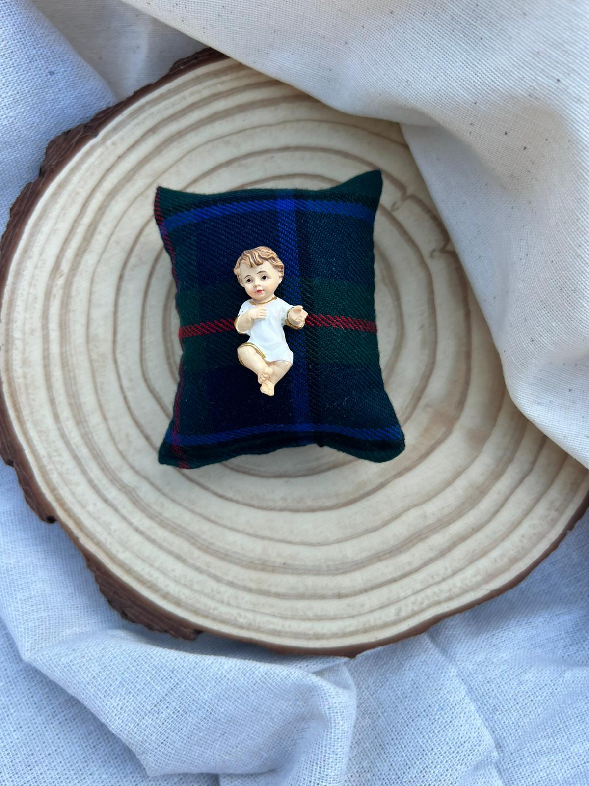 Con todo nuestro cariño, tomamos el nombre de la noche más santa del año para prestárselo a esta almohadita porque, ¿hay algo más navideño que un tartán con un Niño Jesús encima?